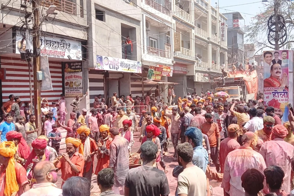 शनिवार की सुबह नौ बजे शहर के छावनी स्थित नगर पालिका के पास चमत्कालेश्वर महादेव पहुंचे और अन्य शिव मंदिरों के पश्चात प्राचीन मनकामेश्वर महादेव मंदिर तहसील चौराहे पहुंचे। डोल-नगाड़ों और डीजे की धुनों के मध्य महादेव की होली में गुलाल और अबीर उड़ाने के लिए मशीन के अलावा, दिल्ली, छत्तीसगढ़ और जबलपुर से अघोरी भी इसमें शामिल होने पहुंचे थे।