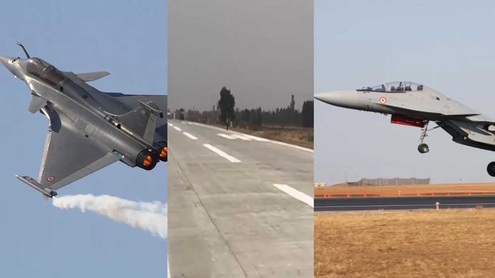 गंगा एक्सप्रेसवे पर उड़ान भरने वाले लड़ाकू विमान