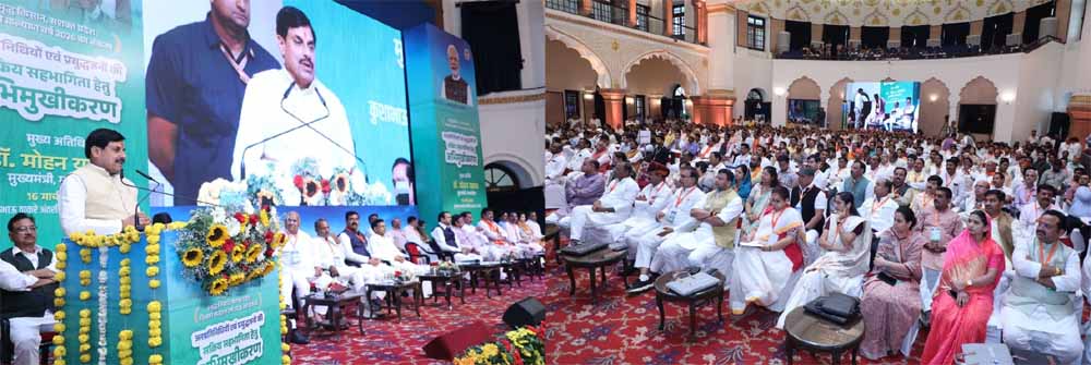 मुख्यमंत्री डॉ. यादव कुशाभाऊ ठाकरे अंतर्राष्ट्रीय सभागार में कृषक कल्याण वर्ष में सक्रिय सहभागिता जुटाने के उद्देश्य से आयोजित किए गए कृषि अभिमुखीकरण कार्यशाला को संबोधित कर रहे थे। कार्यशाला में उप मुख्यमंत्री द्वय श्री जगदीश देवड़ा और श्री राजेन्द्र शुक्ल सहित किसान कल्याण एवं कृषि विकास मंत्री श्री एदल सिंह कंषाना, सहकारिता मंत्री श्री विश्वास सारंग, खाद्य एवं नागरिक आपूर्ति मंत्री श्री गोविन्द सिंह राजपूत, राजस्व मंत्री श्री करण सिंह वर्मा, जल संसाधन मंत्री श्री तुलसीराम सिलावट, अनुसूचित जाति कल्याण मंत्री श्री नागर सिंह चौहान, नवीन एवं नवकरणीय ऊर्जा मंत्री श्री राकेश शुक्ला, उच्च शिक्षा मंत्री श्री इंदर सिंह परमार, सूक्ष्म, लघु एवं मध्यम उद्यम मंत्री श्री चैतन्य काश्यप, संस्कृति राज्यमंत्री (स्वतंत्र प्रभार) श्री धर्मेन्द्र भाव सिंह लोधी, पिछड़ा वर्ग कल्याण राज्यमंत्री (स्वतंत्र प्रभार) श्रीमती कृष्णा गौर, कुटीर एवं ग्रामोद्योग राज्यमंत्री (स्वतंत्र प्रभार) श्री दिलीप जायसवाल, मछुआ कल्याण एवं मत्स्य विकास राज्यमंत्री (स्वतंत्र प्रभार) श्री नारायण सिंह पवार सहित मंत्रीगण, विधायक, जनप्रतिनिधि एवं किसान संगठनों के प्रतिनिधि, एफपीओ के पदाधिकारी एवं प्रबुद्धजन शामिल हुए। मुख्यमंत्री डॉ. यादव ने कहा कि कुशाभाऊ ठाकरे सभागार मध्यप्रदेश के पुराने विधानसभा भवन का पवित्र स्थान है। इस स्थान पर कृषक कल्याण योजनाओं पर केन्द्रित कार्यशाला राज्य सरकार के कृषि क्षेत्र को दी जा रही प्राथमिकता का भी प्रतीक है। मुख्यमंत्री डॉ. यादव ने इस कार्यक्रम के लिए आयोजकों को बधाई दी।