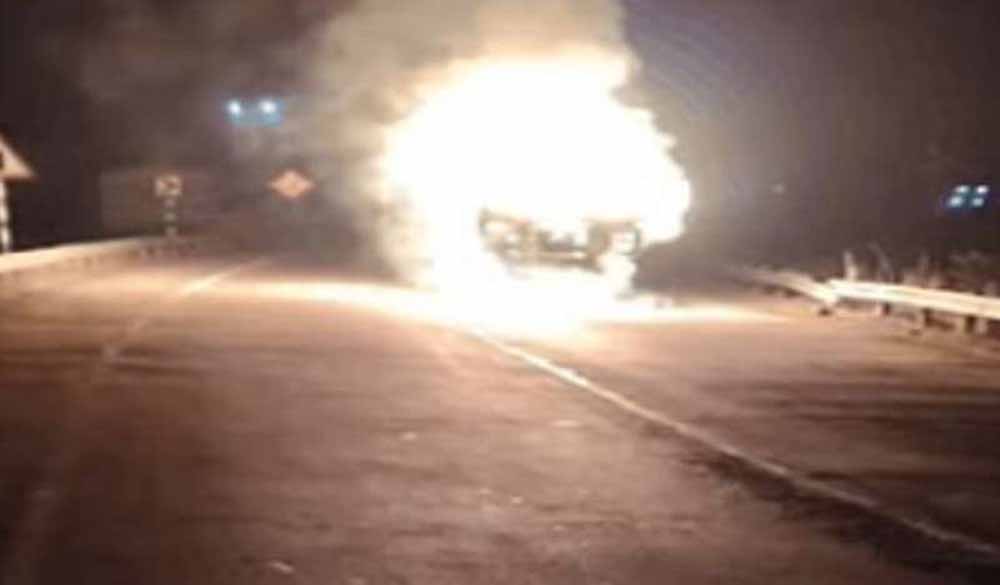 अंबिकापुर- कटघोरा मुख्य मार्ग हादसा , ट्रक और बाइक में जबरदस्त भिड़ंत, दोनों वाहनों में लगी भीषण आग