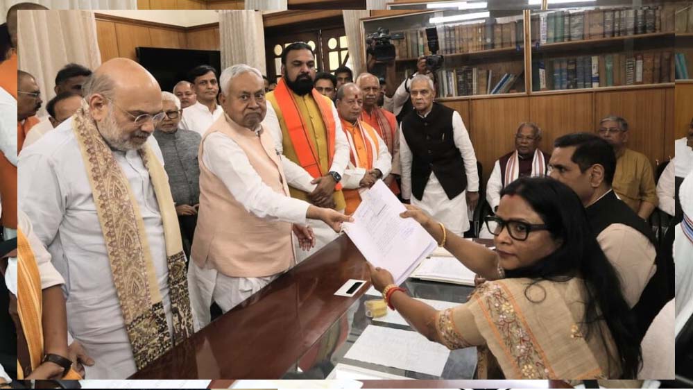 नॉमिनेशन के बाद CM हाउस पहुंचे नीतीश, शाह ने की मीटिंग