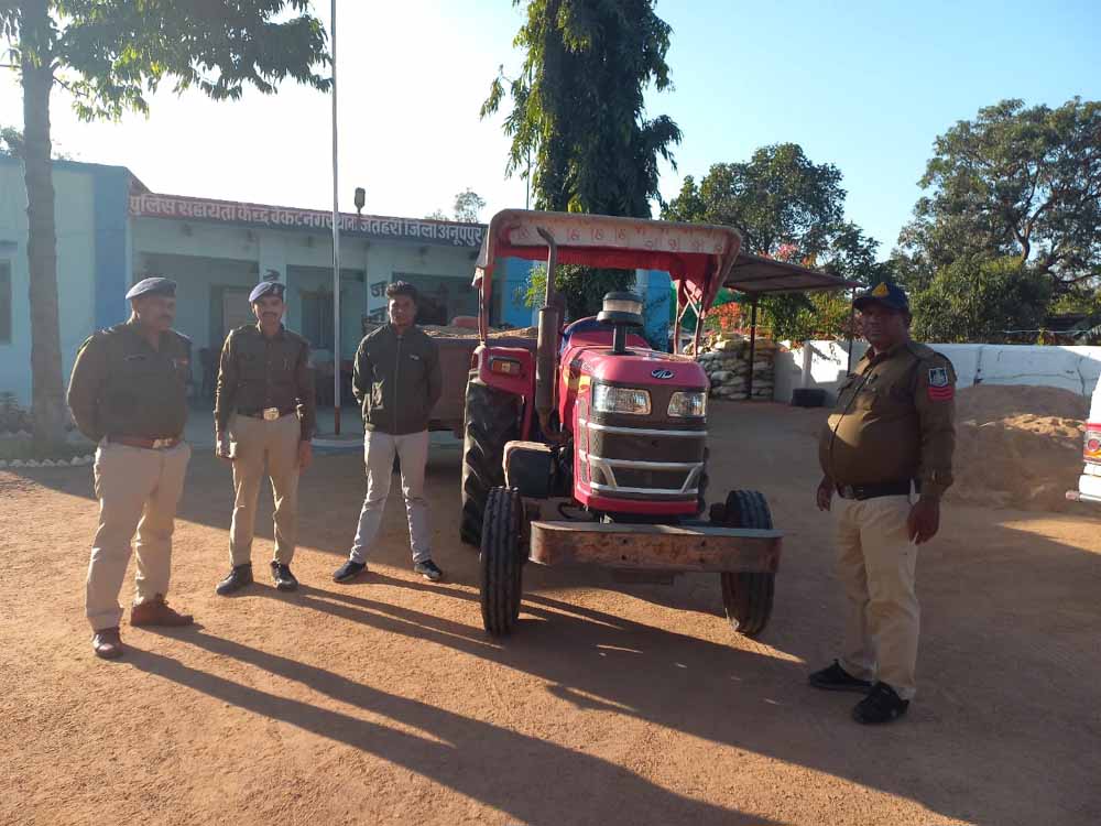 अनूपपुर पुलिस द्वारा अवैध रेत परिवहन करते ट्रेक्ट ट्राली करने वाले आरोपीयो के विरूध्द कार्यवाही