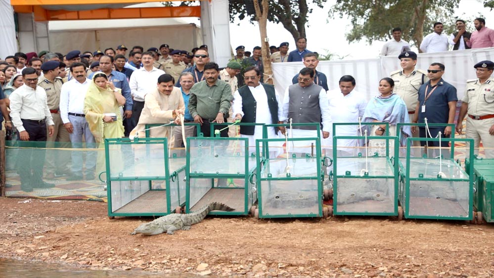 मुख्यमंत्री डॉ. यादव ने माँ नर्मदा नदी के पावन जल में 6 मगरमच्छों का कराया जलप्रवेश
