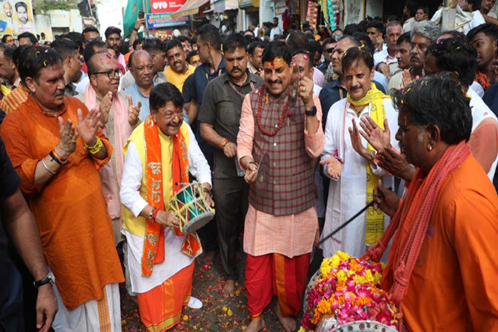 मुख्यमंत्री डॉ. यादव डमरु और झांझ मंजीरे बजाते हुए पूरे सवारी मार्ग पर चले पैदल