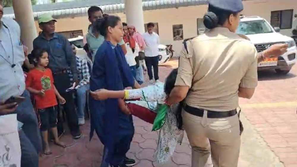 पति से प्रताड़ित होकर महिला ने अपने दोनों बच्चों के साथ एसपी ऑफिस में चल रही जनसुनवाई के दौरान खाया जहर
