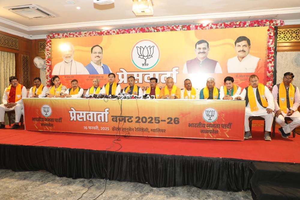 भारतीय जनता पार्टी के राष्ट्रीय महासचिव विनोद तावडे ने ग्वालियर में केंद्रीय बजट 2025-26 पर पत्रकार-वार्ता को किया संबोधित
