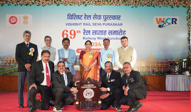 पश्चिम मध्य रेलवे के 69वें रेल सप्ताह समारोह के अंतर्गत महाप्रबंधक श्रीमती शोभना बंदोपाध्याय महोदया द्वारा विशिष्ट रेल सेवा पुरस्कार आवंटित किये गये| इस अवसर पर जबलपुर में आयोजित भव्य समारोह में रेल कर्मचारियों एवं  भोपाल, जबलपुर और कोटा मंडल के विभिन्न विभागों को उनके उत्कृष्ट कार्यों के लिए पुरस्कृत किया गया। वित्तीय वर्ष 2023-24 के लिए भोपाल मंडल को कुल 6 दक्षता शील्ड प्राप्त हुई हैं, जो मंडल की उत्कृष्ट सेवाओं और प्रयासों को दर्शाती हैं।