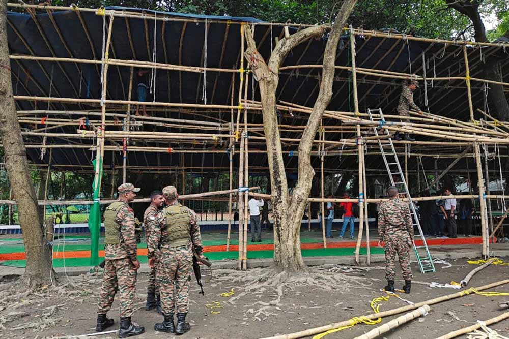 मंगलवार को हुई इस घटना से के स्थल से कुछ ही दूरी पर सेना के अधिकारियों ने मध्य कोलकाता के मायो रोड पर गांधी प्रतिमा के पास बनाए गए तृणमूल कांग्रेस के मंच को सोमवार को इस आधार पर तोड़ना शुरू कर दिया था कि पार्टी ने कार्यक्रम की अनुमति की अवधि पार कर ली थी। मायो रोड रक्षा बलों के स्वामित्व और प्रशासन वाला क्षेत्र है।