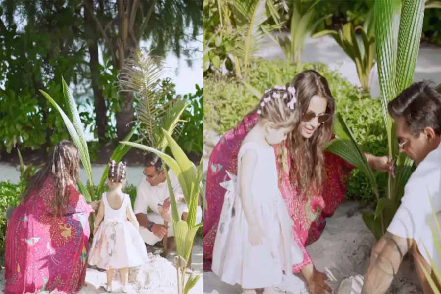 अभिनेत्री बिपाशा बसु ने अपनी बेटी देवी और पति करण सिंह ग्रोवर के साथ मिलकर सभी के लिए ‘खुशी और उम्मीद’ के पौधे रोपे, जिसकी झलक उन्होंने सोशल मीडिया पर दिखाई।