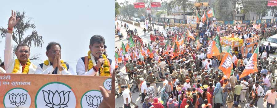 मुख्यमंत्री विष्णुदेव साय के नेतृत्व में आज जगदलपुर में भाजपा का ऐतिहासिक और अभूतपूर्व रोड शो आयोजित हुआ, जिसमें भारी जनसमर्थन देखने को मिला. एयरपोर्ट से शुरू हुए इस भव्य रोड शो में भाजपा कार्यकर्ताओं और स्थानीय नागरिकों ने पूरे जोश के साथ भाग लिया. कमल के झंडों से सजी सड़कों पर उमड़े जनसैलाब ने भाजपा की प्रचंड जीत का संकेत दे दिया.