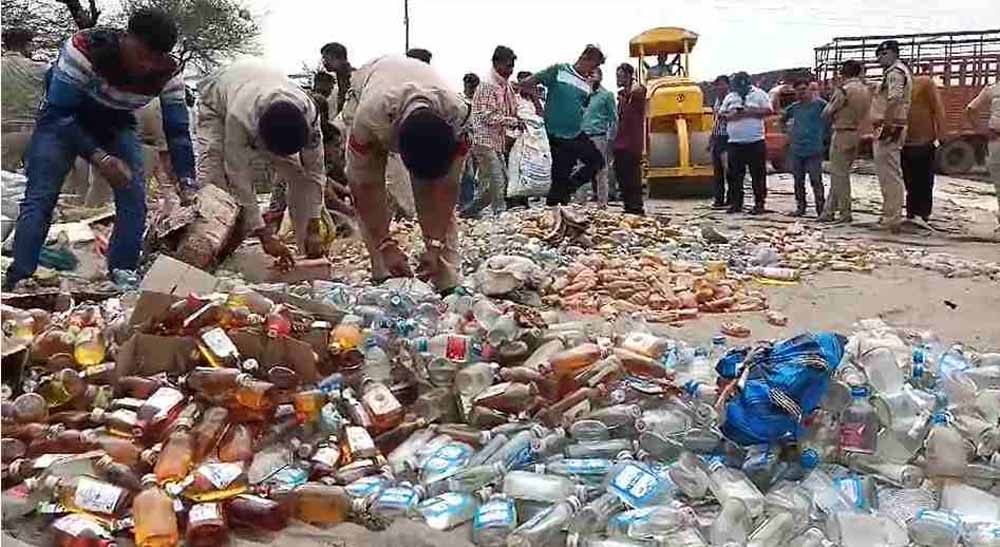 दो करोड़ की अवैध शराब पर चला बुलडोजर, 40 हजार लीटर मदिरा को पुलिस ने किया नष्ट