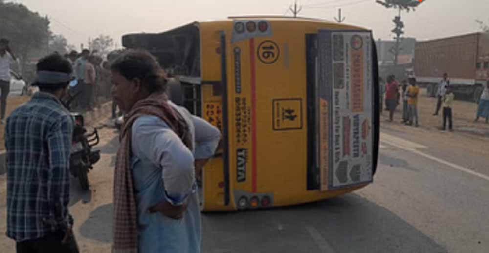 बच्चों से भरी बस हुई हादसे का शिकार, अनियंत्रित होकर पलटी