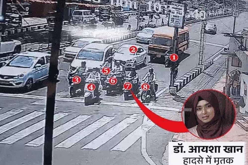 बता दें कि सोमवार को भोपाल के बाणगंगा चौराहे पर स्कूल की बस ने रेड सिग्नल पर खड़ी आठ गाड़ियों को टक्कर मार दी थी। हादसे में स्कूटी सवार बीएएमएस इंटर्न डॉ. आयशा खान की मौके पर ही दर्दनाक मौत हो गई थी। वह अपनी शादी की तैयारियों में जुटी थी। शादी की तारीख 14 जून तय थी। उनकी मां जब रिश्तेदारों को शादी के कार्ड बांट रही थीं, तभी उन्हें बेटी की मौत की खबर मिली।