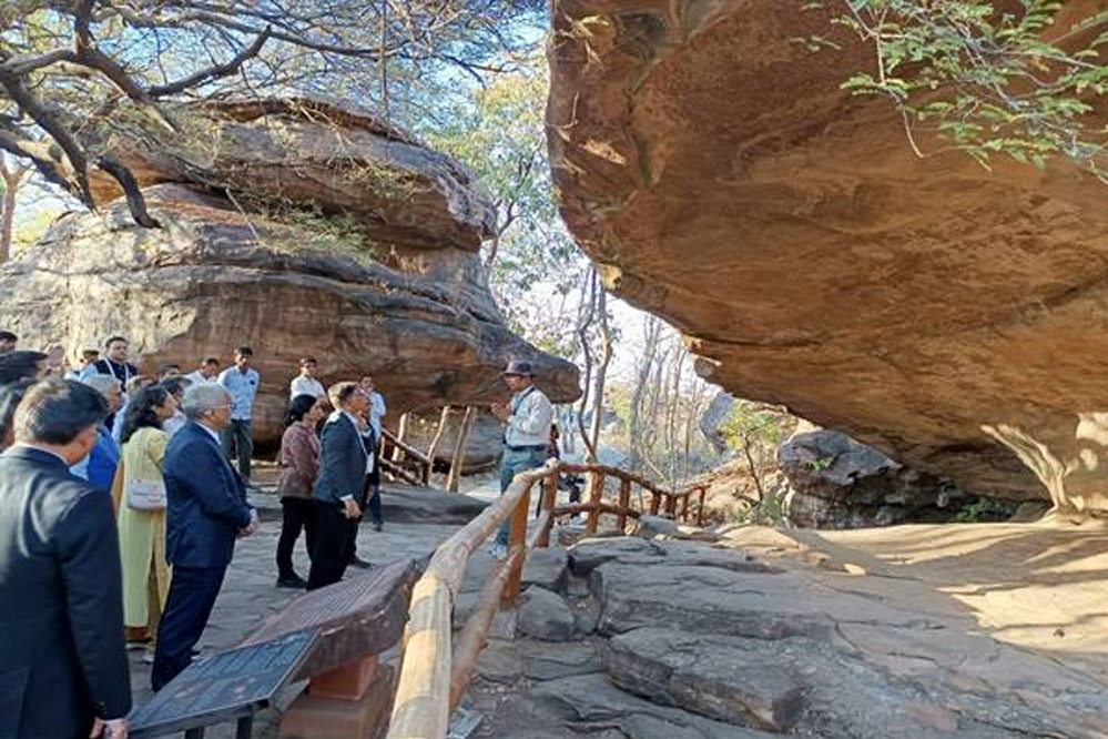 वित्त आयोग के अध्यक्ष एवं सदस्यों ने विश्व धरोहर भीम बैटका का किया भ्रमण