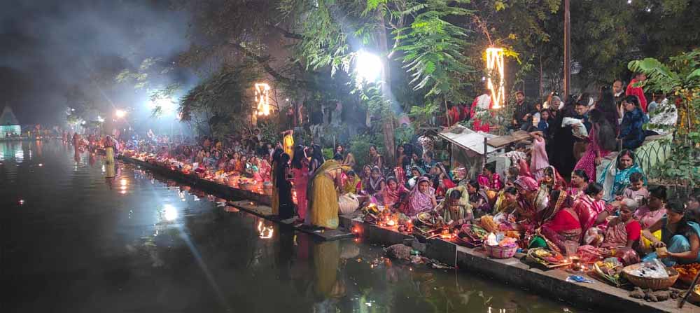 आमातालाब के घाट पर उगते सूर्य को छठ व्रतियों ने दी उषा अर्घ्य देकर 4 दिवसीय पवित्र अनुष्ठान का समापन किया