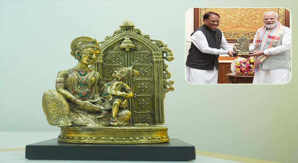 मुख्यमंत्री विष्णुदेव साय ने नई दिल्ली में प्रधानमंत्री नरेंद्र मोदी से मुलाकात के दौरान छत्तीसगढ़ की समृद्ध जनजातीय परंपरा और सांस्कृतिक पहचान को दर्शाती बेल मेटल से निर्मित ‘माता कौशल्या के राम’ की अद्वितीय कलाकृति भेंट की।