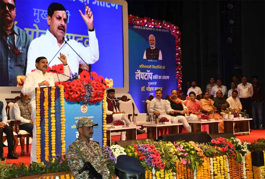 मुख्यमंत्री डॉ. मोहन यादव शुक्रवार को प्रतिभाशाली विद्यार्थियों के बैंक खाते में लैपटॉप की राशि अंतरित की। भोपाल के आरसीव्हीपी नरोन्हा प्रशासन अकादमी के स्वर्ण जयंती सभागार में राज्य स्तरीय कार्यक्रम आयोजित किया गया। मुख्यमंत्री डॉ. मोहन यादव ने मध्यप्रदेश माध्यमिक शिक्षा मंडल की परीक्षा वर्ष 2023-24 में कक्षा 12 की बोर्ड परीक्षा में 75 प्रतिशत या उससे अधिक अंक से उत्तीर्ण होने वाले प्रदेश के 89 हजार 710 प्रतिभाशाली विद्यार्थियों को सिंगल क्लिक से उनके बैंक खातों में 224 करोड़ रुपये की राशि अंतरित की। इस अवसर पर मुख्यमंत्री ने कहा कि जिन बच्चों के खाते में लैपटॉप की राशि पहुंच रही है। बच्चे लैपटॉप का बिल अपने स्कूल तक पहुंचाना। ताकि राशि का सही उपयोग सुनिश्चित हो।