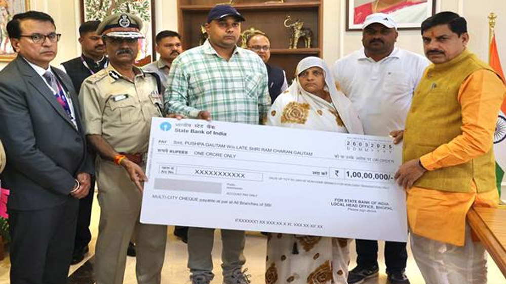 मुख्यमंत्री डॉ. मोहन यादव ने गुरूवार को मुख्यमंत्री निवास पर मऊगंज जिले के गौतम परिवार को व्यक्तिगत दुर्घटना बीमा के अंतर्गत एक करोड़ रूपये की राशि का चेक प्रदान किया। भारतीय स्टेट बैंक की पुलिस सेलरी पैकेज योजना में पुलिसकर्मियों को दी जाने वाली पूरक व्यक्तिगत दुर्घटना बीमा सुविधा के अनुसार परिवार को यह राशि प्रदान की गई। मुख्यमंत्री डॉ. यादव ने शहीद गौतम के पात्र उत्तराधिकारी को शासकीय सेवा में लेने के निर्देश पुलिस महानिदेशक को दिए हैं।