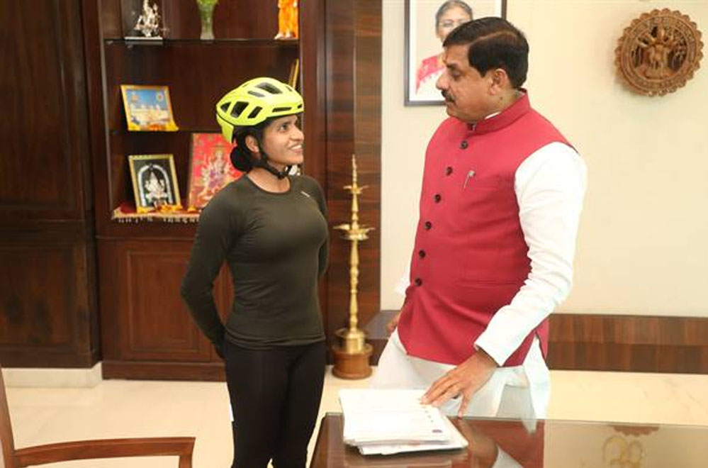मुख्यमंत्री डॉ. यादव ने किया साइकिलिस्ट आशा मालवीय का सम्मान