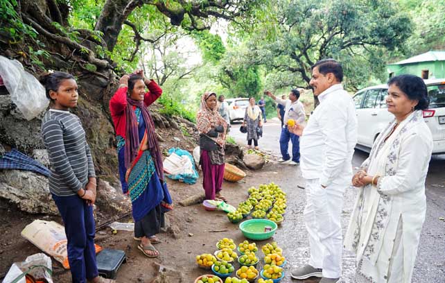 मुख्यमंत्री डॉ. मोहन यादव  सपत्नीक नर्मदापुरम जिले के पचमढ़ी प्रवास पर पहुंचे। पचमढ़ी से लौटते वक्त मुख्यमंत्री डॉ. यादव ने बारिआम गांव में सड़क किनारे टोकरी में रखकर आम बेच रहीं महिलाओं और बच्चों को देखकर अपना काफिला रूकवाया। मुख्यमंत्री ने आम बेच रहीं सभी महिलाओं से आत्मीय संवाद किया। पूछा - रोज कितने के आम बेच लेती हो ? मुख्यमंत्री को अपने बीच पाकर आम विक्रेता श्रीमती बसंती टेकाम की खुशी का ठिकाना न रहा, उसने प्रफुल्लित होकर बताया कि सर, रोज सुबह से शाम यहां बैठते हैं, तो 400 से 500 रूपए के आम बिक ही जाते हैं। मुख्यमंत्री डॉ. यादव ने समीप ही खड़ी श्रीमती बसंती की बेटी को देखकर पूछा - क्या ये बिटिया स्कूल जाती है ? महिला ने कहा कि हां सर, सीएम राइज स्कूल में पढ़ती है। मुख्यमंत्री ने हर्ष जताकर कहा कि अरे बिटिया, अब उसका नाम सांदीपनि विद्यालय हो गया है। मुख्यमंत्री ने यहां आम बेच रहीं सभी महिलाओं से आम खरीदे और खुद भुगतान भी किया।