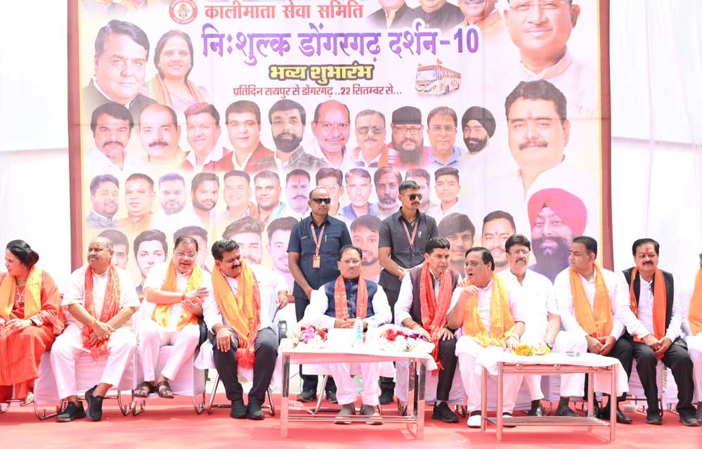मुख्यमंत्री  विष्णु देव साय ने आज रायपुर शहर के आकाशवाणी चौक स्थित माँ काली मंदिर से डोंगरगढ़ तक निःशुल्क बस सेवा का शुभारंभ किया। रायपुर से माँ बम्लेश्वरी के दर्शन के लिए डोंगरगढ़ जाने वाले श्रद्धालुओं को इस बस सेवा का नि:शुल्क लाभ मिलेगा। इस अवसर पर मुख्यमंत्री  साय ने कालीमाता सेवा समिति की इस पहल की सराहना करते हुए समिति के पदाधिकारियों को बधाई एवं शुभकामनाएँ दीं। उन्होंने माँ काली और माँ बम्लेश्वरी से छत्तीसगढ़ में खुशहाली, समृद्धि और शांति की कामना की। साथ ही सभी प्रदेशवासियों को शारदीय नवरात्र की हार्दिक बधाई और शुभकामनाएँ भी प्रेषित कीं।