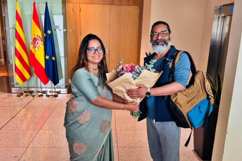 मुख्यमंत्री हेमंत सोरेन बीते शनिवार की सुबह स्पेन के शहर बार्सिलोना पहुंचे। इस दौरान सीएम हेमंत का गर्मजोशी से स्वागत किया गया। एक्टिंग काउंसेल जेनरल अर्शा ने सीएम हेमंत को पुष्प गुच्छ देकर स्वागत किया।