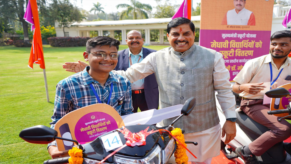 मुख्यमंत्री डॉ. यादव ने समारोह में 10 मेधावी विद्यार्थियों को स्कूटी की चाबी प्रदान की तथा उनके साथ स्कूटी चलाकर उनका उत्साहवर्धन भी किया। माध्यमिक शिक्षा मंडल की कक्षा 12वीं की परीक्षा में शासकीय विद्यालयों के टॉपर्स को स्कूटी प्रदान करने की इस योजना के अंतर्गत संपूर्ण प्रदेश में 7 हजार 900 प्रतिभाशाली विद्यार्थियों को ई-स्कूटी प्रदान की जा रही है।