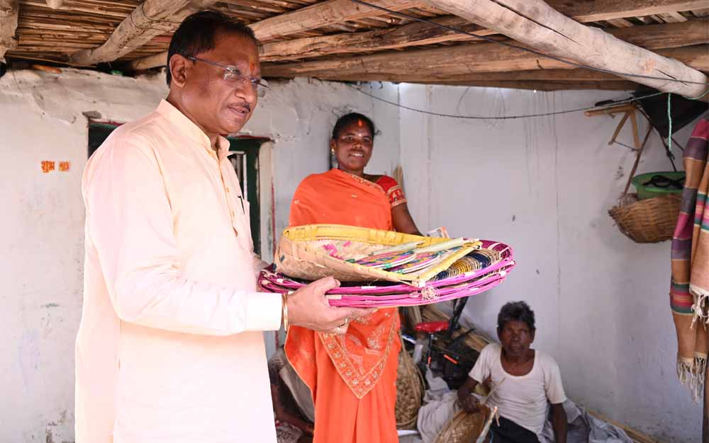 मुख्यमंत्री साय ने कमार बस्ती में कुलेश्वरी कमार के परिवार को बांस का समान बनाते देखा तो उनके इस काम की जानकारी ली। उन्होंने बांस से बनी सामग्रियों की कीमत भी पूछी। श्री साय को ये समान बेहद पसंद आए। उन्होंने तुरंत ही अपने परिवार में शादी के लिए दो पर्रा, दो धुकना और एक सुपा खरीदा। मुख्यमंत्री का कुल 600 रुपए का बिल बना। उन्होंने खुश होकर कुलेश्वरी को 700 रुपए दिए।