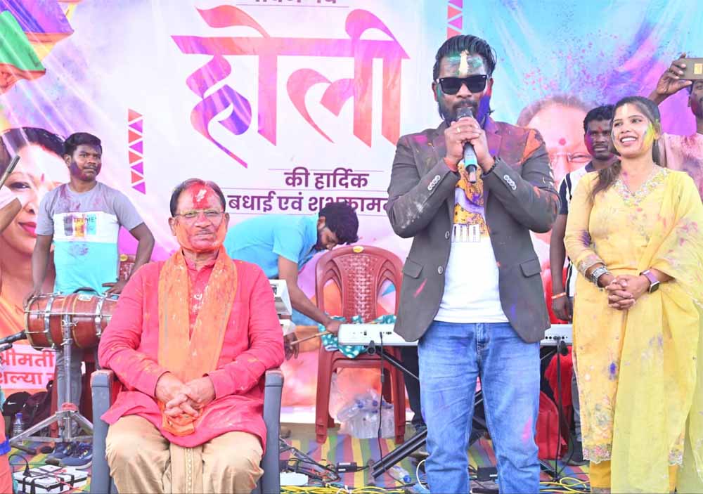 सांस्कृतिक कार्यक्रमों की श्रृंखला में नितेश कच्छप और उनकी टीम ने होली के पारंपरिक लोकगीतों की मनमोहक प्रस्तुति दी, जिससे पूरा माहौल रंगीन और संगीतमय हो गया।