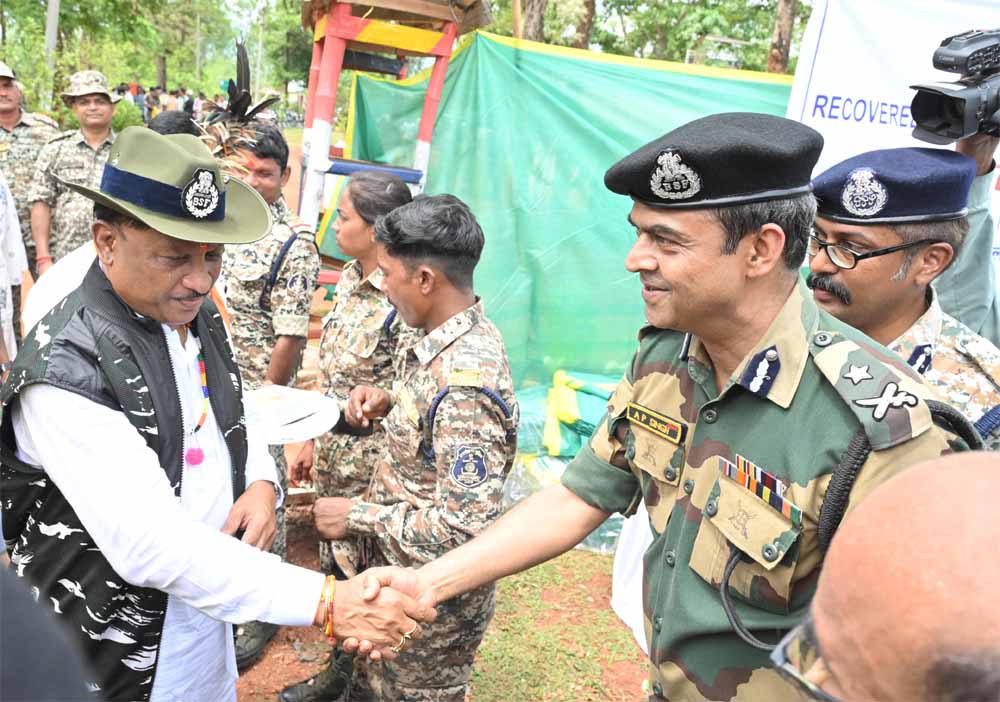 प्रदेश के मुख्यमंत्री विष्णुदेव साय आज ओरछा ब्लॉक के ग्राम बासिंग स्थित बीएसएफ कैम्प पहुंचे, जहां पर उन्होंने 21 मई को हुई डीआरजी-बीएसएफ और जिला बल के द्वारा माओवादियों के विरूद्ध नारायणपुर, दंतेवाड़ा और बीजापुर की सरहदी पहाड़ियों में चलाए गए नक्सल विरोधी ऑपरेशन में 27 नक्सलियों को मार गिराने वाले जवानों की हौसला-अफजाई की। इस दौरान मुख्यमंत्री के साथ उप मुख्यमंत्री एवं गृहमंत्री श्री विजय शर्मा, वन एवं जल संसाधन मंत्री श्री केदार कश्यप विशेष रूप से उपस्थित रहे। मुख्यमंत्री ने बासिंग कैम्प में जवानों को संबोधित करते हुए कहा कि यह माओवाद के विरूद्ध अब तक की सबसे बड़ी कार्रवाई है जिसमें सुरक्षा बलों ने हार्डकोर माओवादी बसवा राजू सहित 27 को मार गिराया।