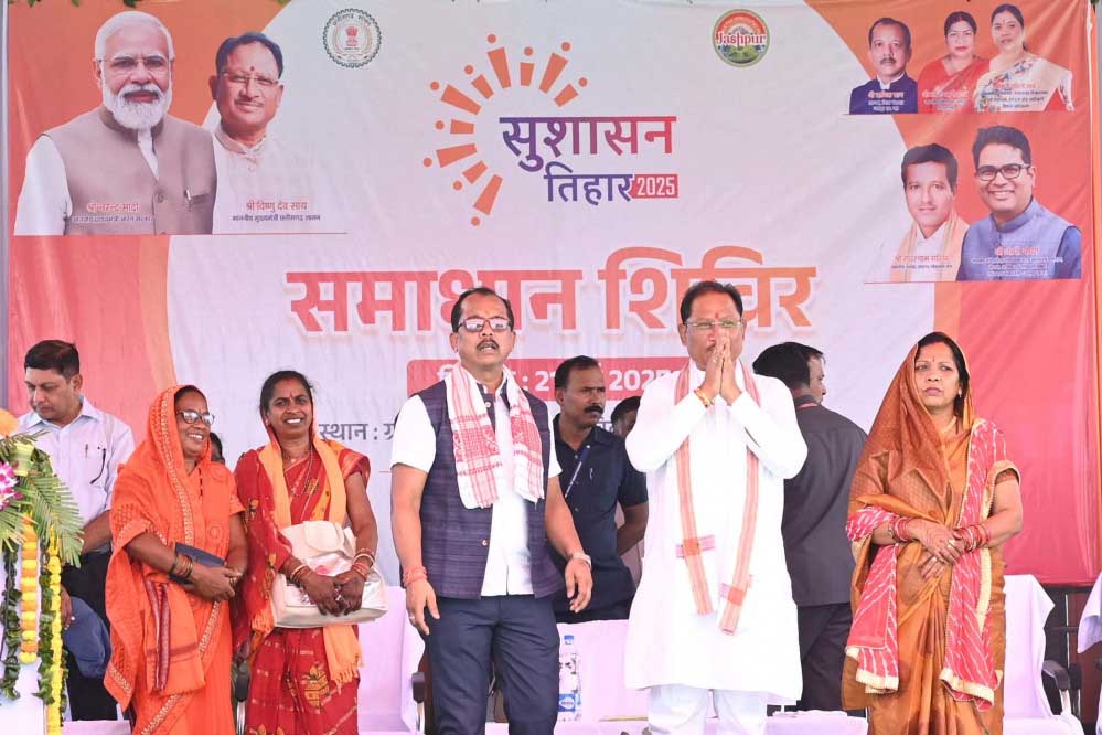 मुख्यमंत्री साय ने कहा कि सशासन तिहार के अंतर्गत शिविर के माध्यम से लोगों की समस्याओं और मांगों का समाधान किया जा रहा है। उन्होंने कहा कि गांव में लोगों को ऑनलाईन तथा बैंकिंग सुविधा उपलब्ध कराने के लिए 1460 ग्राम पंचायतों में अटल डिजिटल सेवा केन्द्र खोला गया है इन केंद्रों के माध्यम से ऑनलाइन विभिन्न प्रकार के दस्तावेज प्राप्त करने और राशि के लेन-देन की सुविधा ग्रामीणों को मिलने लगी है। कार्यक्रम में मुख्यमंत्री की धर्मपत्नी पत्नी श्रीमती कौशल्या साय, सरगुजा आदिवासी विकास प्राधिकरण की उपाध्यक्ष और पत्थलगांव विधायक श्रीमती गोमती साय, मुख्य सचिव अमिताभ जैन, मुख्यमंत्री के प्रमुख सचिव सुबोध कुमार सिंह सहित अन्य जनप्रतिनिधि और बड़ी संख्या में ग्रामीणजन उपस्थित थे।