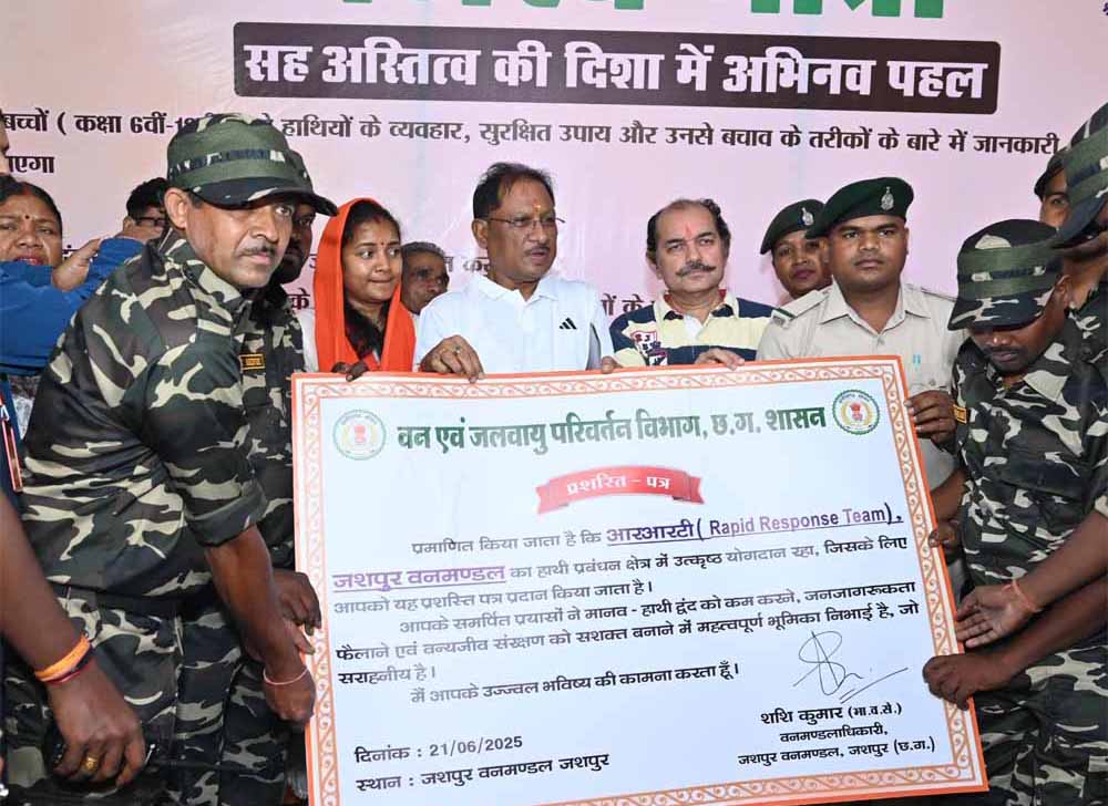 अंतरराष्ट्रीय योग दिवस के अवसर पर मुख्यमंत्री विष्णु देव साय ने आज जशपुर के रणजीता स्टेडियम परिसर में आयोजित कार्यक्रम में ‘गजरथ यात्रा’ को हरी झंडी दिखाकर शुभारंभ किया। यह अभिनव पहल छत्तीसगढ़ में मानव-हाथी द्वंद को कम करने और वन्यजीव संरक्षण के लिए जनजागरूकता फैलाने के उद्देश्य से शुरू की गई है। इस यात्रा के माध्यम से स्कूलों, ग्राम पंचायतों और हाट-बाजारों में पहुंचकर हाथियों के व्यवहार, सुरक्षा उपायों और सह-अस्तित्व के संदेश को जन-जन तक पहुंचाया जाएगा।