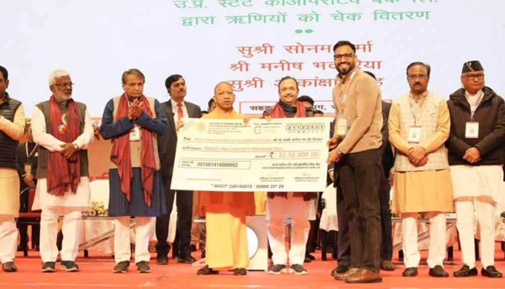 यूपी स्टेट को-ऑपरेटिव बैंक लिमिटेड द्वारा सीएम युवा उद्यमी योजना के तहत अजय प्रताप सिंह को दनिश्ता फातिमा को पांच-पांच लाख ऋण का चेक दिया गया