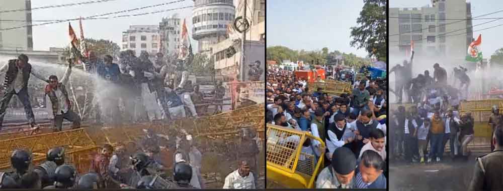 बेरोजगारी के खिलाफ यूथ कांग्रेस के प्रदर्शन के चलते पुलिस और प्रदर्शनकारियों के बीच झड़प, पानी का किया छिड़काव