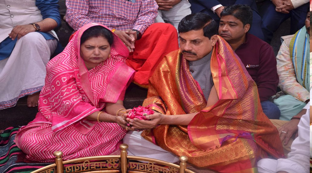 सीएम डॉ मोहन भगवान श्री अंगारेश्वर महादेव मंदिर पहुंचे : पत्नी संग की पूजा अर्चना, दर्शन के बाद गौ सेवा भी की