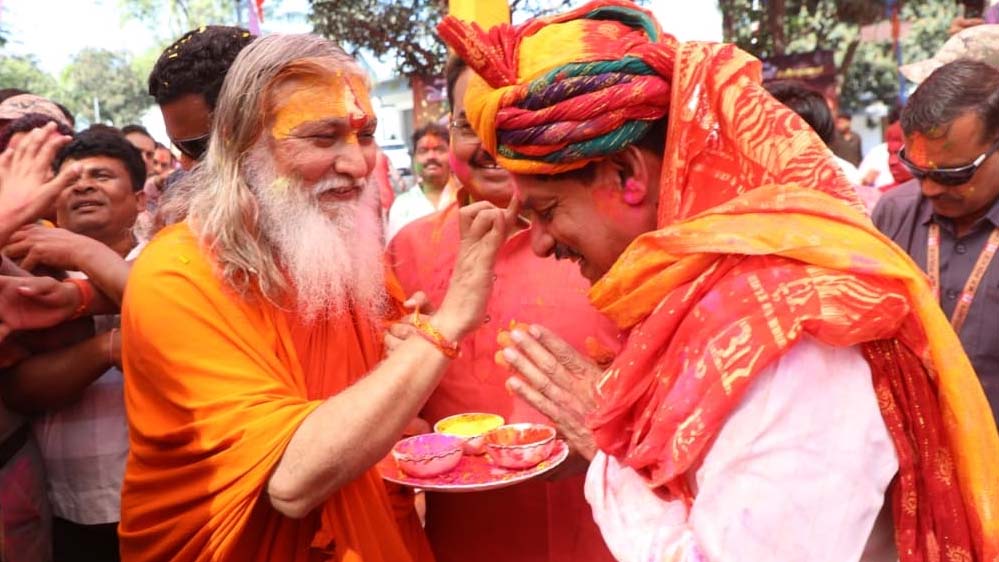 - मुख्यमंत्री डॉ. यादव ने संतों , समाजसेवियों, जनप्रतिनिधियों, गणमान्य नागरिकों, कार्यकर्ताओं और मीडिया के साथियों के साथ खेली होली