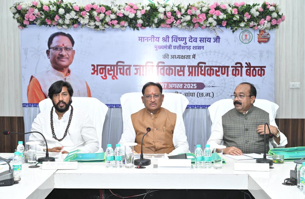 मुख्यमंत्री विष्णु देव साय की अध्यक्षता में आज जांजगीर-चांपा जिले के जिला पंचायत सभाकक्ष में आयोजित अनुसूचित जाति विकास प्राधिकरण की बैठक में प्राधिकरण के बजट को 50 करोड़ से बढ़ाकर 75 करोड़ रुपये करने की स्वीकृति दी गई। मुख्यमंत्री साय ने निर्देश दिए कि प्राधिकरण मद से स्वीकृत कार्यों को सभी कलेक्टर्स गंभीरता से लें और उन्हें उच्च गुणवत्ता के साथ निर्धारित समयसीमा में पूर्ण कराना सुनिश्चित करें। उन्होंने कहा कि अब प्राधिकरण की बैठक हर वर्ष समय पर आयोजित होगी और कार्यों की गहन समीक्षा की जाएगी।
