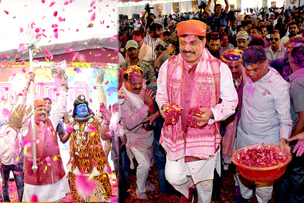 मुख्यमंत्री डॉ. यादव को उज्जैन में "होली के रंग-साधु संतों के संग" कार्यक्रम में ढोल, डमरू, वेद ऋचाओं की गूंज के बीच अखिल भारतीय अखाड़ा परिषद अध्यक्ष रविंद्र पूरी जी महाराज ने गुलाल लगाकर होली की मंगलकामनाएं दी। रविंद्र पूरी जी महाराज ने कहा कि मुख्यमंत्री डॉ. यादव का उज्जैन को संपूर्ण भारत की सांस्कृतिक राजधानी बनाने के लक्ष्य को पूर्ण करने में हम साधु-संत संपूर्ण रूप से साथ है।