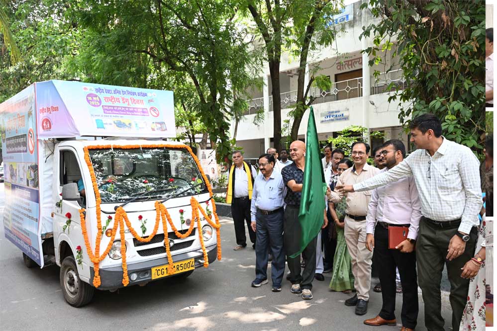 कलेक्टर संजय अग्रवाल ने डेंगू रोग के प्रति समाज में जनजागरूकता फैलाने के लिए जिला कार्यालय परिसर से प्रचार रथ को हरी झंडी दिखाकर रवाना किया। यह वाहन हाट बाजारों, गांवों और विभिन्न वार्डों में पहुंचकर डेंगू के कारण, लक्षण और बचाव के उपाय की जानकारी देगा। राष्ट्रीय वेक्टर जनित रोग नियंत्रण कार्यक्रम के अंतर्गत राष्ट्रीय डेंगू दिवस पर इसका आयोजन किया गया है। सीएमएचओ डॉक्टर प्रमोद तिवारी ने बताया की एडीज नामक मच्छर के काटने से यह रोग होता है । यह मच्छर दिन के समय में लोगों को काटता है। डेंगू के लक्षणों में तेज बुखार व तेज सिर दर्द,मांसपेशियों तथा जोड़ों में दर्द,आंखों के पीछे दर्द होना, जी मिचलाना एवं उल्टी होना, नाक मुंह मसूड़े से खून आना तथा त्वचा पर चकते उभरना है। इस गंभीर बीमारी से बचाव के लिए कूलर, पानी की टंकी,पक्षियों के पीने के पानी का बर्तन, फ्रिज की ट्रे, फूलदान इत्यादि को प्रति सप्ताह खाली करें वह धूप में सुखाकर प्रयोग करें। नारियल का खोल,टूटे हुए बर्तन वह टायरों में पानी जमा न होने दें। घरों के दरवाजे व खिड़कियों में जाली परदे लगाया जाए तथा मच्छरदानी का उपयोग करें। इस अवसर पर नगर निगम आयुक्त अमित कुमार, जिला पंचायत सीईओ संदीप अग्रवाल तथा स्वास्थ्य विभाग के डॉक्टर एवं कर्मचारी उपस्थित थे।