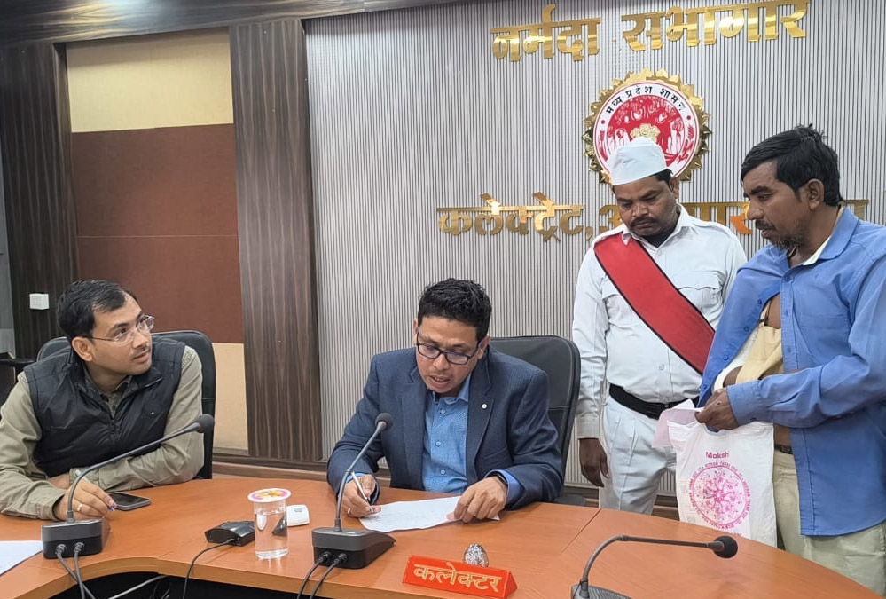 कलेक्टर श्री हर्षल पंचोली ने मंगलवार को जनसुनवाई में जिले के नगरीय एवं ग्रामीण क्षेत्रों से आए आवेदकों की समस्याएं सुनी। जनसुनवाई में 52 आवेदन प्राप्त हुए। कलेक्टर ने जनसुनवाई में आए हर एक आवेदक से धैर्यपूर्वक उनकी समस्याओं पर चर्चा की और उन्हें उनके शीघ्र निराकरण का आश्वासन भी दिया। उन्होंने मौके पर मौजूद अधिकारियों को नागरिकों से प्राप्त आवेदनों पर संवेदनशील रुख अपनाते हुए निराकरण करने के निर्देश दिए। उन्होंने आवेदकों की समस्याओं पर संबंधित क्षेत्र के अधिकारियों को कार्यवाही करने के निर्देश दिए। जनसुनवाई में जिला पंचायत के मुख्य कार्यपालन अधिकारी श्री तन्मय वशिष्ठ शर्मा, अपर कलेक्टर श्री दिलीप पांडेय, अनुविभागीय अधिकारी राजस्व अनूपपुर श्री सुधाकर सिंह बघेल, तहसीलदार अनूपपुर श्री अनुपम पांडेय सहित विभिन्न विभागों के जिला अधिकारीगणों ने भी आवेदकों की समस्याएं सुनी।