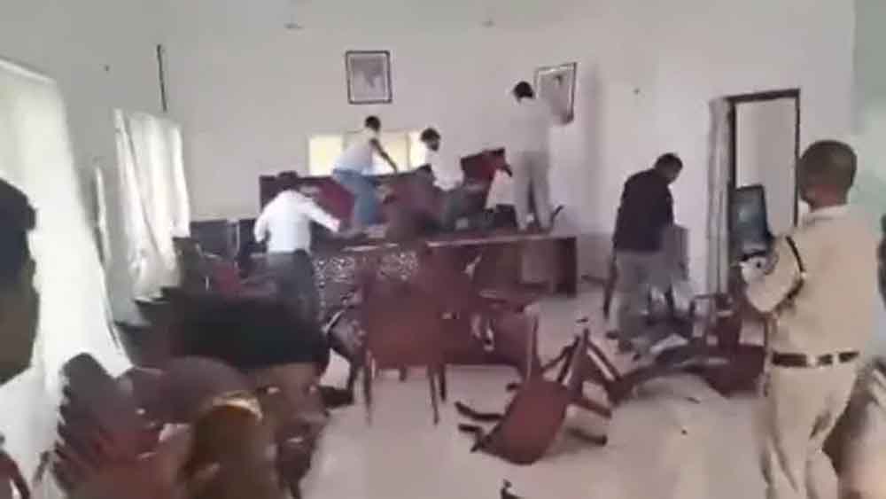 कांग्रेस कार्यकर्ताओं ने मुख्यमंत्री पर टिप्पणी का जताया विरोध, तेलंगाना में बीआरएस कार्यालय में तोड़फोड़