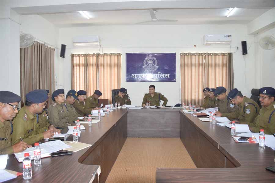 उक्त अपराध समीक्षा बैठक में पुलिस अधीक्षक अनूपपुर श्री मोती उर रहमान, अति.पुलिस अधीक्षक अनूपपुर श्री इसरार मन्सूरी, एसडीओपी अनूपपुर श्री सुमित केरकेट्टा, डीएसपी(अ) एन.एस.ठाकुर, रक्षित निरीक्षक अनूपपुर श्रीमती ज्योति दुबे, थाना प्रभारी कोतवाली निरी. अरिवन्द जैन, थाना प्रभारी चचाई निरी.राकेश उईके, थाना प्रभारी जैतहरी निरी.एस.पी.शुक्ला, थाना प्रभारी भालूमाड़ा निरी.संजय खलखो, थाना प्रभारी कोतमा निरी.सुन्द्रेश मरावी, प्रभारी थाना बिजुरी उनि. मानिम टोप्पो, थाना प्रभारी रामनगर उनि. सुमित कौशिक, थाना प्रभारी राजेन्द्रग्राम निरी. बीरेन्द्र बरकडे, थाना प्रभारी अमरकंटक निरी. लालबहादुर तिवारी, थाना प्रभारी करनपठार निरी. पी.सी.कोल, चौकी प्रभारी फुनगा उनि.सोने सिंह परस्ते, चौकी प्रभारी देवहरा उनि.रंगनाथ मिश्रा, चौकी प्रभारी वेंकटनगर उनि.अमरलाल यादव, चौकी प्रभारी सरई उनि. मंगला दुबे एवं पुलिस अधीक्षक कार्यालय के स्टॉफ उपस्थित रहें।