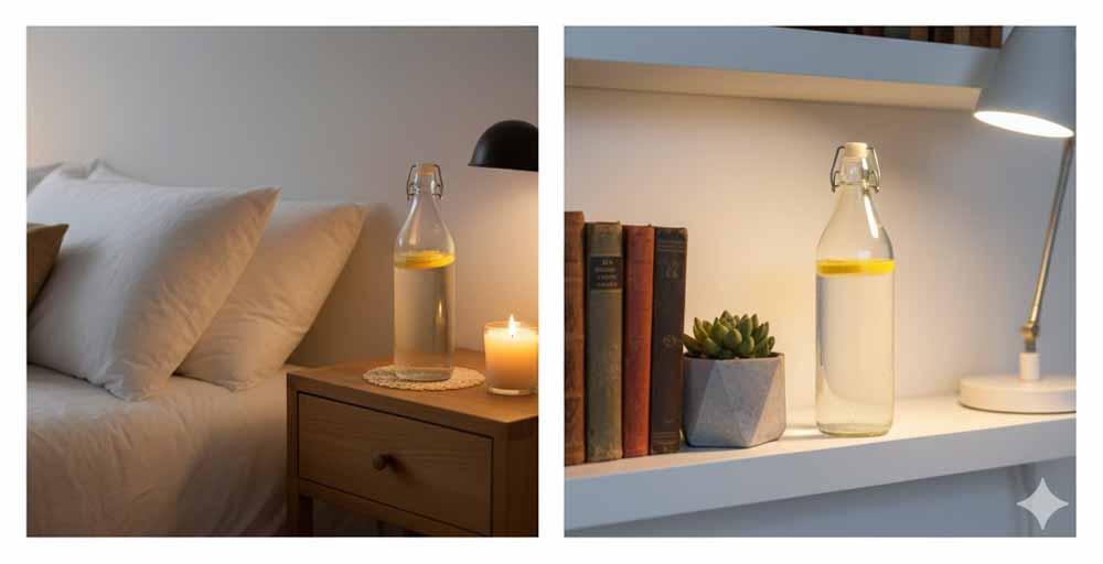 बेडरूम में सीमित मात्रा में रखें: बेडरूम में बहुत ज्यादा पानी की बोतल नहीं रखें। अगर रखनी हो तो सिर के पास नहीं, बल्कि कमरे के उत्तर या पूर्व दिशा में रखें।