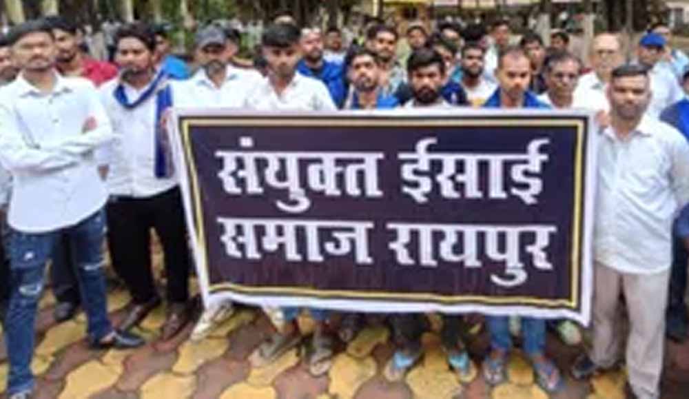राजधानी रायपुर में आज बड़ी संख्या में संयुक्त ईसाई समाज के लोग ईसाई धर्मानुसार घरेलू नियमित प्रार्थना सभा संचालन करने के पक्ष में कार्यवाही करने की मांग को लेकर कलेक्टोरेट पहुंचे। इस दौरान उन्होंने ईसाई समाज पर प्रार्थना सभा की आड़ में धर्मांतरण और जबरन बुलाए जाने के आरोपों को पूरी तरह से गलत बताया। इस दौरान उन्होंने कलेक्टर से मांग की कि उन्हें प्रार्थना सभा में सुरक्षा दी जाए। मांग पूरी नहीं होने पर आगे अर्धनग्न प्रदर्शन, रैली और सभा जैसे बड़े प्रदर्शन के लिए उतारू होंगे।