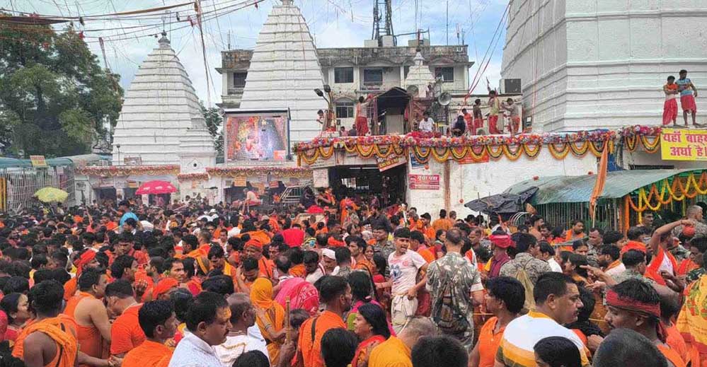भोलेनाथ के दरबार में हाजिरी लगाने उमड़े भक्त, बैद्यनाथ मंदिर में दर्शन को लंबी कतारें