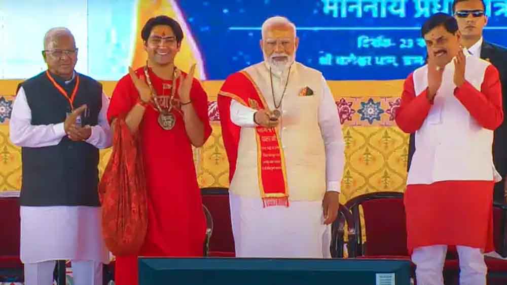पंडित धीरेंद्र शास्त्री ने प्रधानमंत्री नरेंद्र मोदी के नेतृत्व में भारत की बढ़ती शक्ति का भी जिक्र किया और कहा कि यह ऐसे प्रधानमंत्री हैं जो जवान का भी ध्यान रखते हैं और किसान का भी. उनकी बात दुनिया में सुनी जाती है. कई राष्ट्रीय अध्यक्ष आपस में बात नहीं करते, लेकिन प्रधानमंत्री मोदी की यूक्रेन, रूस और अमेरिका के प्रमुखों से बात होती है. पंडित धीरेंद्र शास्त्री ने प्रधानमंत्री नरेंद्र मोदी के नेतृत्व में भारत की बढ़ती शक्ति का भी जिक्र किया और कहा कि यह ऐसे प्रधानमंत्री हैं जो जवान का भी ध्यान रखते हैं और किसान का भी. उनकी बात दुनिया में सुनी जाती है. कई राष्ट्रीय अध्यक्ष आपस में बात नहीं करते, लेकिन प्रधानमंत्री मोदी की यूक्रेन, रूस और अमेरिका के प्रमुखों से बात होती है.