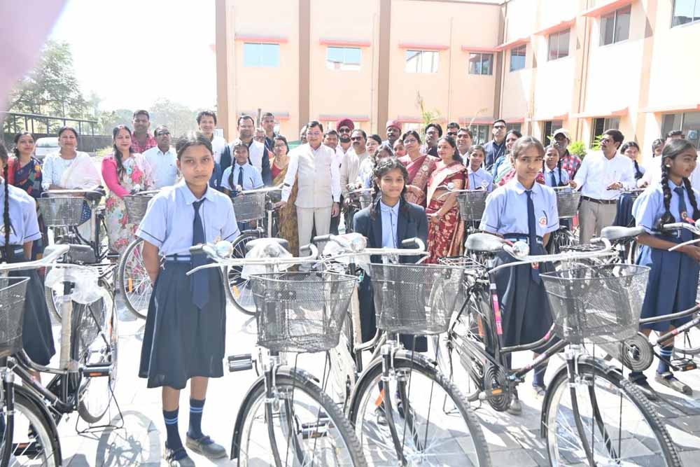 उद्योग मंत्री लखन लाल देवांगन ने छात्राओं को बांटी साइकिल