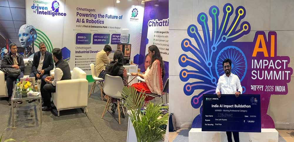 नई दिल्ली के भारत मंडपम में आयोजित प्रतिष्ठित “AI इंपैक्ट समिट” में छत्तीसगढ़ के युवाओं ने अपनी प्रतिभा का परचम राष्ट्रीय स्तर पर लहराया है।