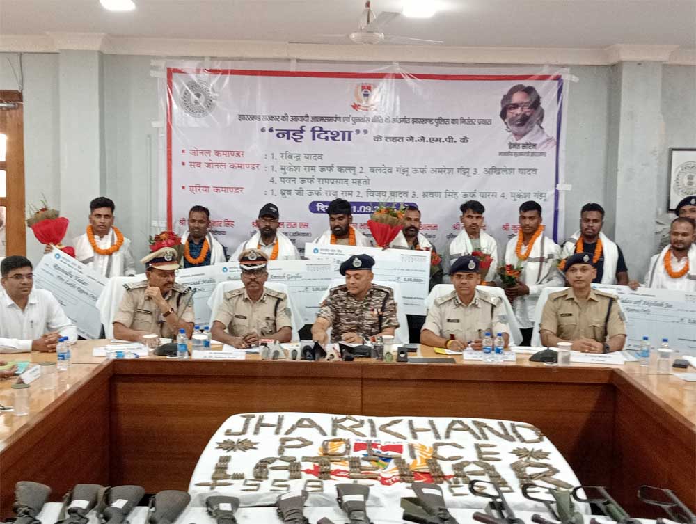 झारखंड पुलिस के हाथ बड़ी कामयाबी लगी है। दरअसल आज यानी सोमवार लातेहार जिले में प्रतिबंधित संगठन झारखंड जनमुक्ति परिषद (जेजेएमपी) संगठन के नौ उग्रवादियों ने पुलिस के समक्ष आत्मसमर्पण कर दिया। नौ उग्रवादियों में एक जोनल कमांडर और चार उप-जोनल कमांडर शामिल हैं, जिन पर कुल 23 लाख रुपये का इनाम था। साथ ही उन्होंने चार एके-47 राइफलों और तीन एसएलआर (सेल्फ लोडिंग राइफल) सहित बड़ी संख्या में हथियार और कारतूस भी पुलिस को सौंपे हैं। पुलिस के वरीय अधिकारयों द्वारा उन्हें गुलदस्ते, शॉल और माला पहनाकर सम्मानित किया गया।