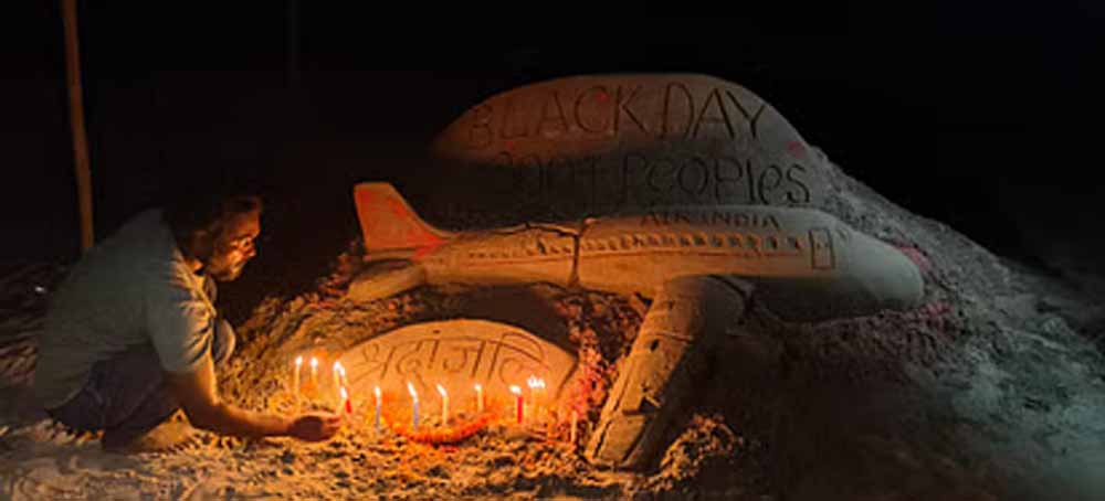 प्रसिद्ध सैंड आर्टिस्ट अशोक कुमार ने विमान हादसे में जान गंवाने वालों को दी श्रद्धांजलि